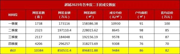 资料显示,2025年越城区新房网签3984套,签约面积54.14万平方米,套均成交面积上升,改善型好房子受市场欢迎;全年二手房累计网签11009套,网签面积102.06万平方米,较上一年上涨10.5%,“小面积、低总价”成为成交主流;全年商住土地拍卖成交22宗,成交金额33.57亿元,土地拍卖市场趋向稳定,且成交溢价有所上升。