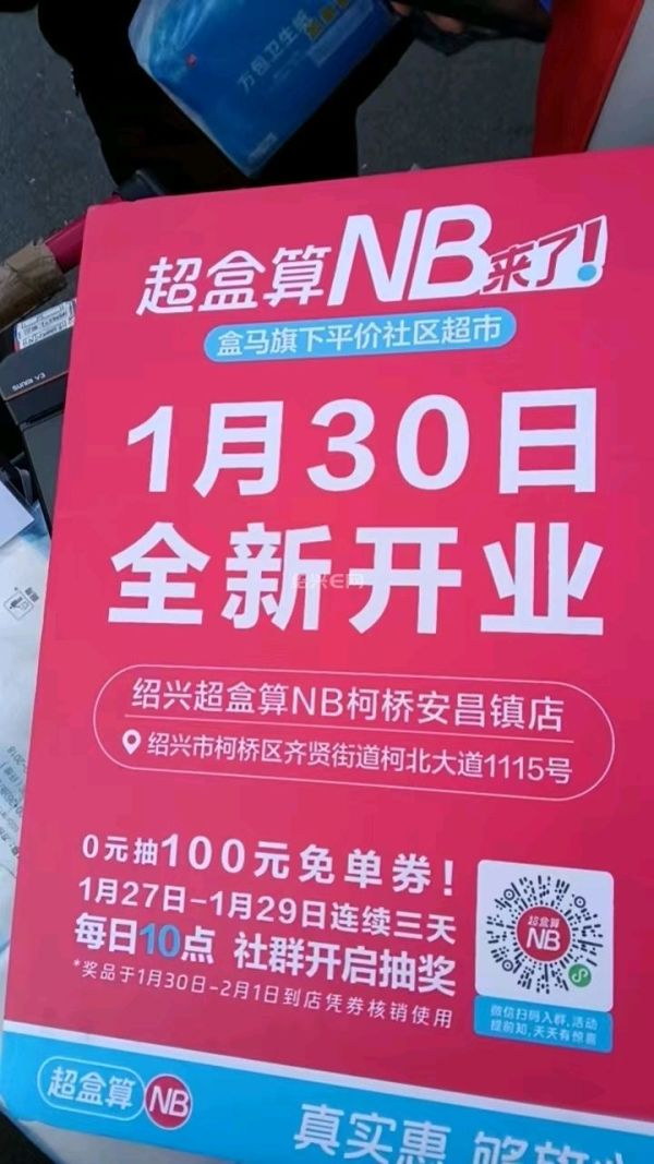 1月30号要新开的超盒算NB,到底是安昌店还是齐贤店?新店的宣传物料问题有好几处。