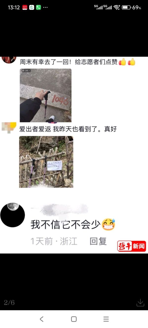 然而,一个现实疑问也随之浮现:免费的共享登山杖,会不会越来越少?社交平台上有网友留言:“我不信登山杖不会少”。