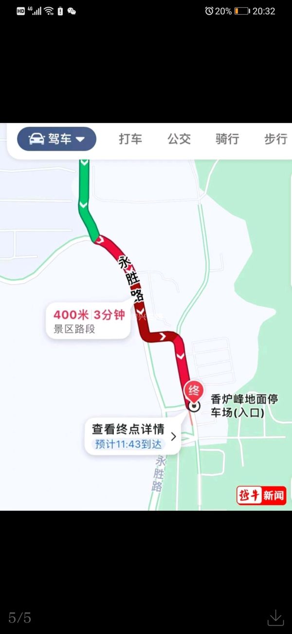 香炉峰地面停车场入口处出现红色提示