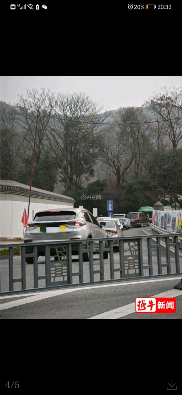 现场图片显示,景区外道路车辆排起长队,通行效率明显下降。