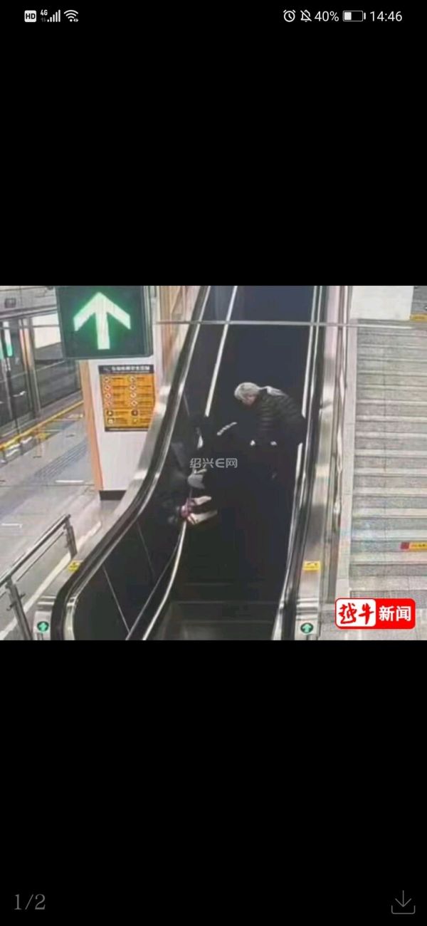 原来就在事发前几分钟,这对白发苍苍的老夫妇缓缓走向上行电梯,老先生腿脚明显不便,走路时步伐蹒跚,老伴则在后方搀扶,当两人踏上电梯台阶时,意外却发生了。