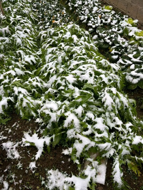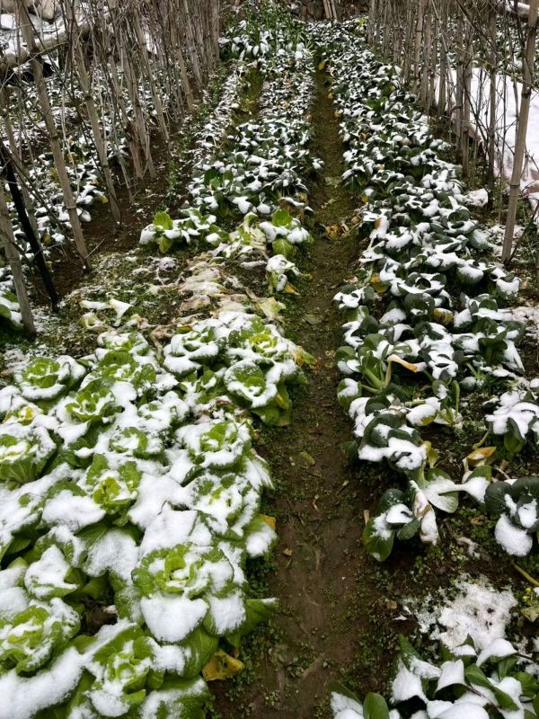 刚刚到王坛镇越联村的亲戚家看到菜地竹林里的积雪,山区的气温比城区低真冷。