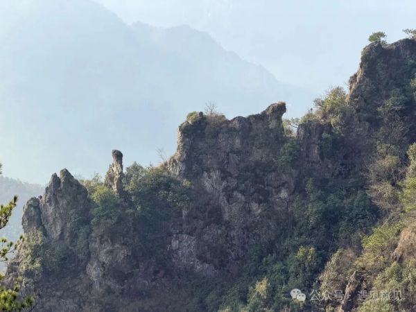 对面山上的石人石马,从石垛峰上看,如人之五指。