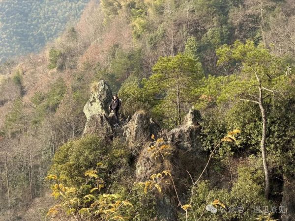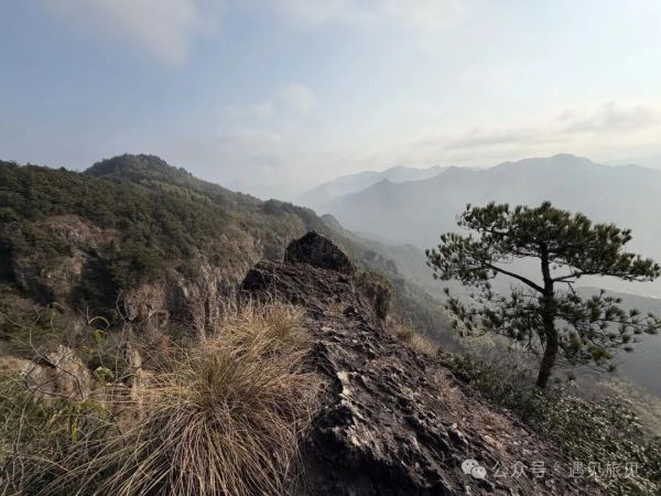 离开仙人洞,返回到石扁担,然后继续向上,走到山脊。此时的山脊线成一半圆形,半圆形的山体与深谷形成半只镬的形状,走在山脊的道路上,如走在镬沿边,这大抵是镬沿山的来历吧。
