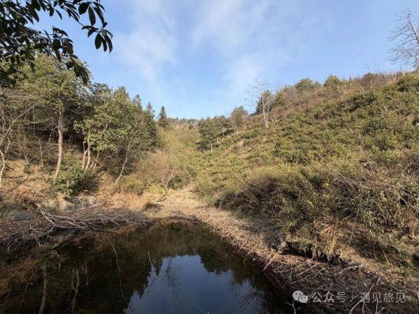 山上有一荒废的茶场,中间有一水池。茶场边缘还有一幢黄泥老房子,大概是守护茶场之用。
