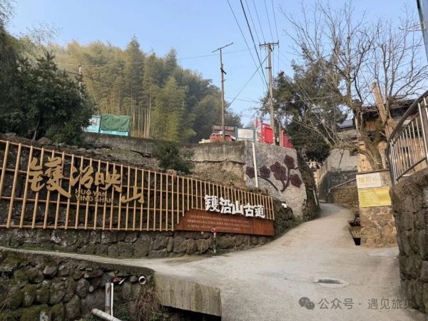 山村的村道大多是沿溪而建,止路坞村也不例外,古道入口写有:镬沿映山。这四个字道出了镬沿山古道的特色,一是山路如镬沿,二是一路有映山红。