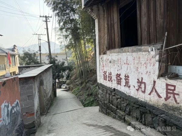 老标语基本脱落,于是村民复又写上那个时代的标语:备战、备荒为人民。