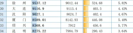 前面这几个除了厦门,都是北方城市,说实话,北方城市从目前看没有任何竞争力,厦门也强,但体量太小,长远看还是搞不过绍兴。绍兴到28位是没任何问题。