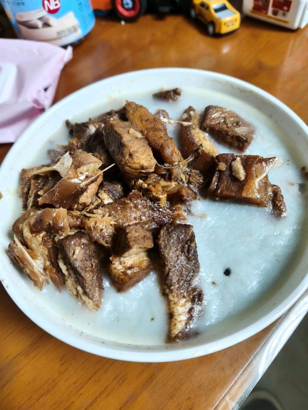 烧了一碗鲞冻肉,我说要吃冷的,可以吃冻,老公说应该吃热的,以前人没得吃,所以冻也吃。一家人分两个口味,真是无语,得一半冷的,一半热一下。
