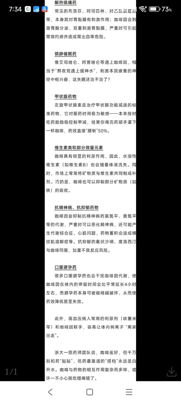 “阿仑膦酸钠片”本来是治疗骨质疏松时用的,但小倩每次吞服药片,都是用咖啡送服下去,药品说明书上其实明确标注:“阿仑膦酸钠与咖啡或橘汁同服可使其生物利用度下降约60%”,这行小字却被粗心的她忽略了,让治疗的药效大打折扣。