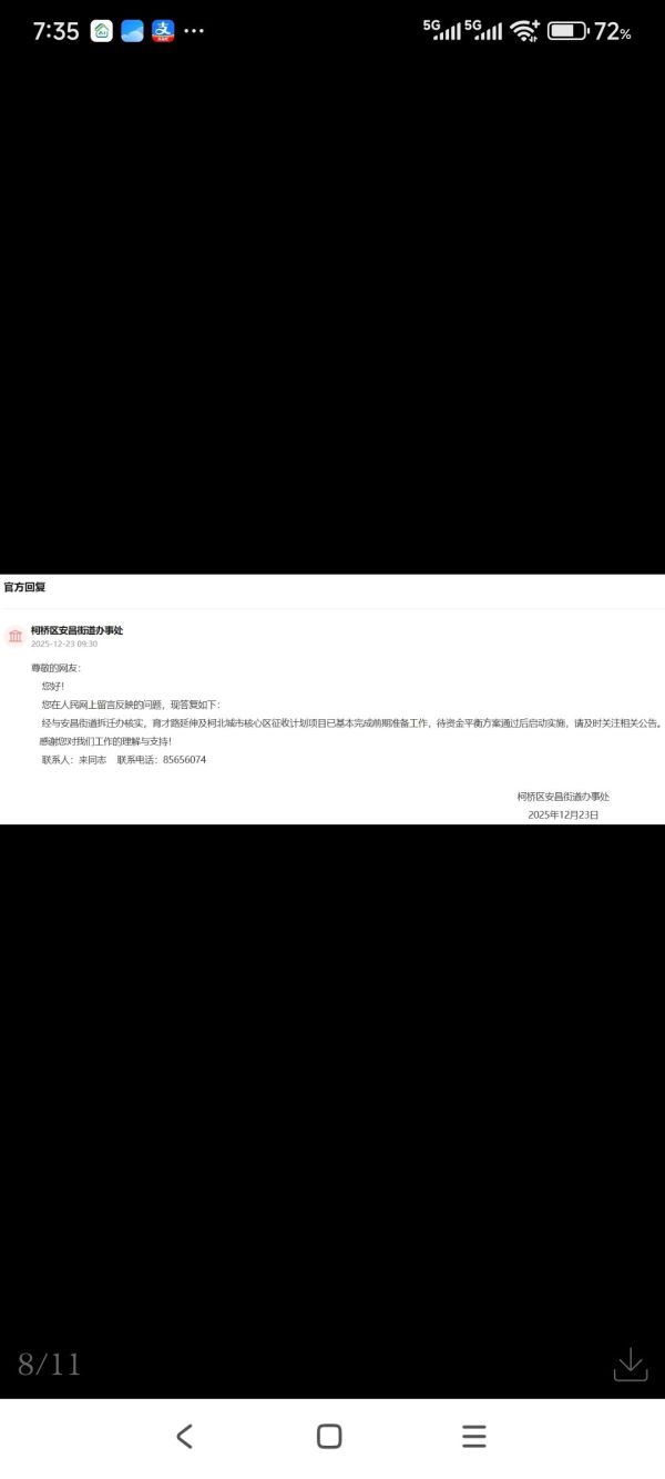 问:请问领导,绍兴市越城区陶家楼底什么时候拆迁,我们同一幢对面已已拆迁,谢谢。