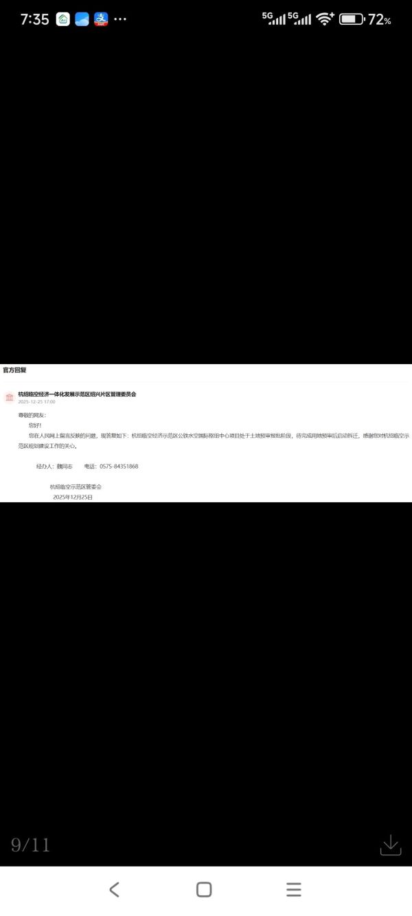 问:领导您好,了解到杭绍临空公铁水空码头项目已与十月份完成勘察设计招标并进行项目红线公示,想了解该项目目前进展情况。因年关将至,很多租客怕拆迁,可能都想着搬走,有关民生,请问何时会进行拆迁。