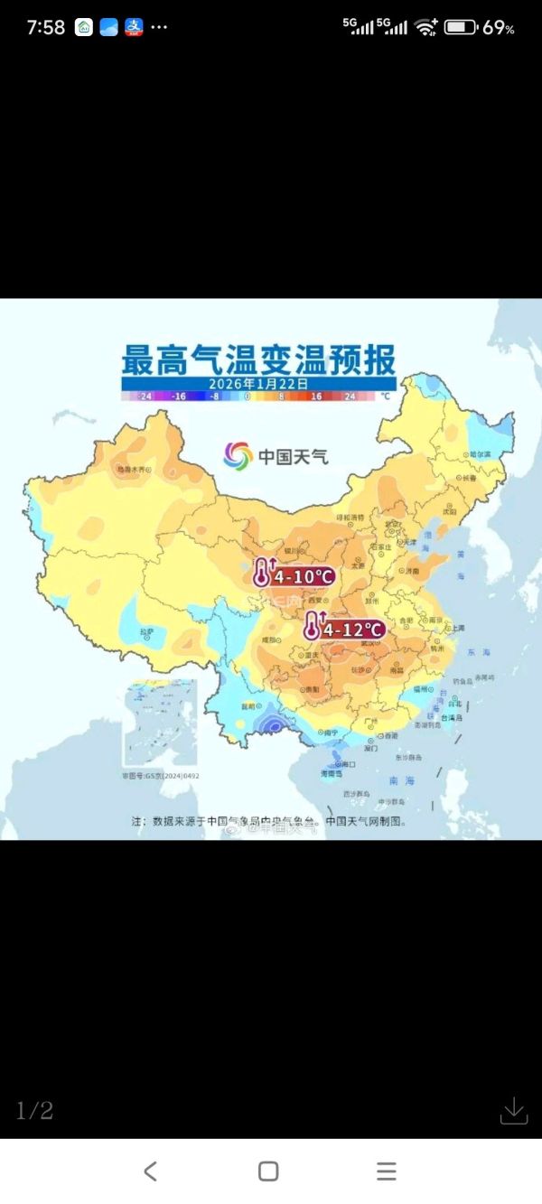 据中国天气消息,1月22日起三天,气温主题就是升!升!升!变温预报图都是大片黄橙色↓↓