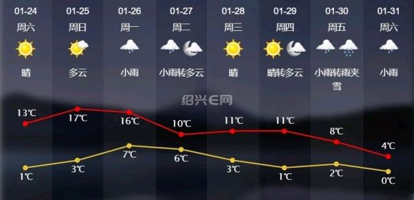 据“绍兴气象”微信号消息,今天晴到少云,最高气温:10~11℃;最低气温:-2~-4℃,有冰冻,山区-5~-9℃,有严重冰冻。http://m.shaoxing.com.cn/p/3407515.html