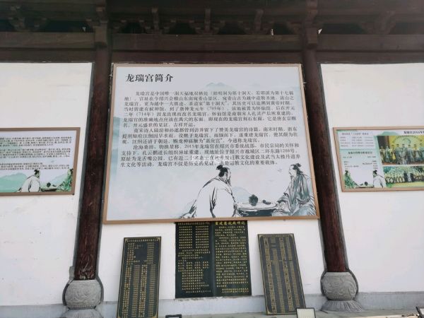 现存的唐代《龙瑞宫记》摩崖刻石是浙江省文物保护单位,如今的道观以红墙黄瓦、飞檐斗拱为特色,俯瞰呈龙头造型,三面环水,是道教文化的重要载体。