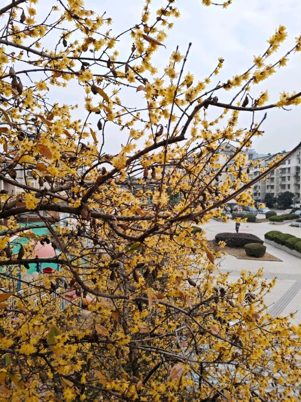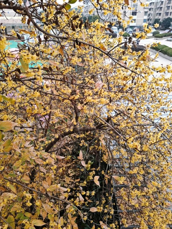 这几天腊梅花开正旺时,下午在小公园里看到的。劝君莫抄花,大家共欣赏。