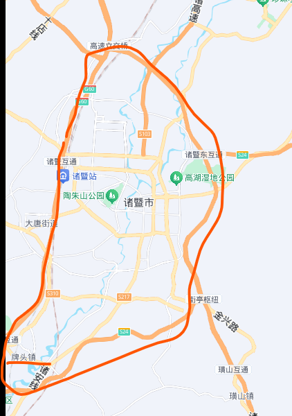 不知道多大,但知道诸暨城区有三环路。
