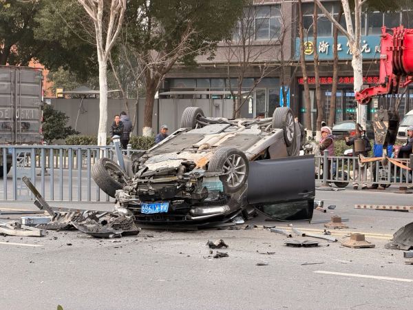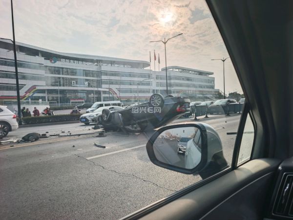 回 第1楼(袍江007)的帖子 袍江007:骑电动车路过,这辆特斯拉翻车了,另外一辆车在边边上,现场各路汽修厂神仙都来了,保险公司和交警也都到了,护栏撞的非常厉害,这护栏保险公司要赔不少钱了。