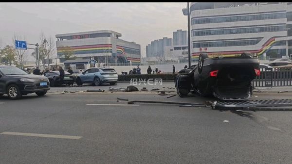 围栏被撞坏,两个车道都有车被撞,一辆车翻了,数不清有几辆车受损,看见有人受伤有点重。看见有特斯拉被撞,远远还停着辆保时捷跑车。有没有目击者?