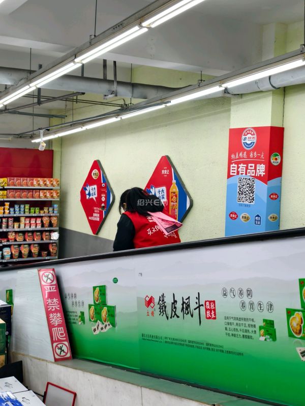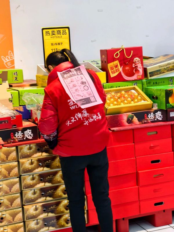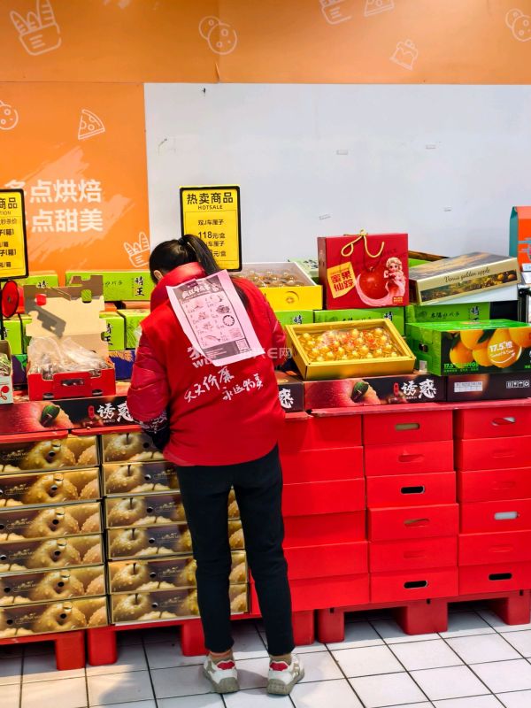 超市里搞促销活动也太拼了,市区城南某超市里,看到员工的背后都贴有宣传活动海报。
