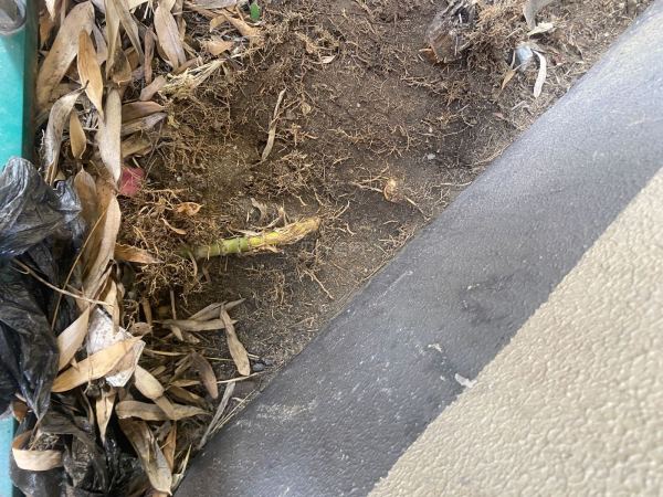 只浅浅挖开上面一点泥土就看到许多盘根错节,要不要全部挖下去?贴着墙壁下面泥土长出来的,肉眼都能看见,你一定要狡辩说自己沉降下去,等于说竹根不会对墙地基损伤,这种说法根本站不住脚,你唯一的目的就是让我多花钱去做鉴定吧,送个几千?然后物业又不同意再请人做,又花个几千?明明是眼睛都看到的事实