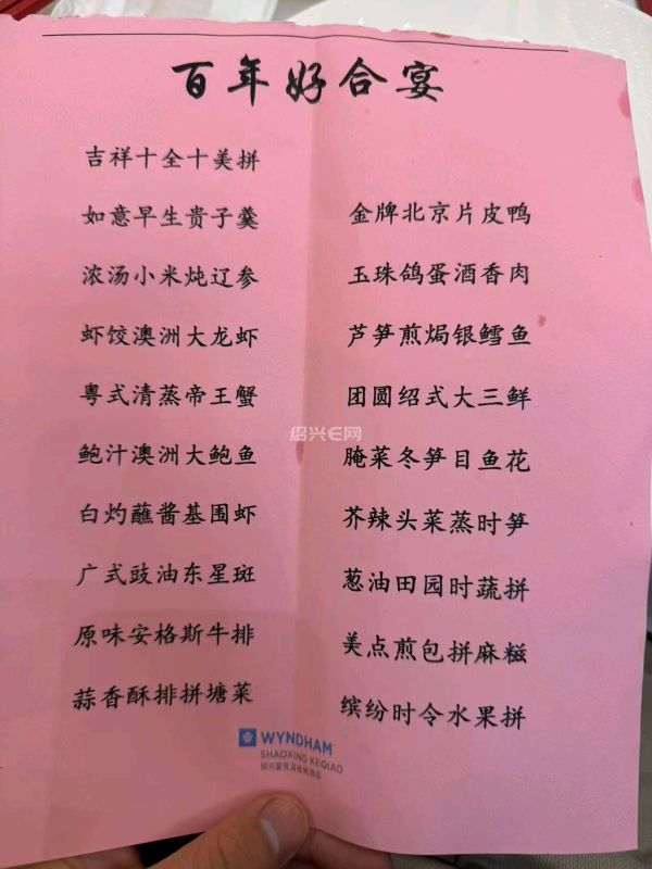 绍兴富悦温德姆酒店一喜宴12888一桌