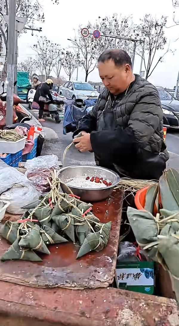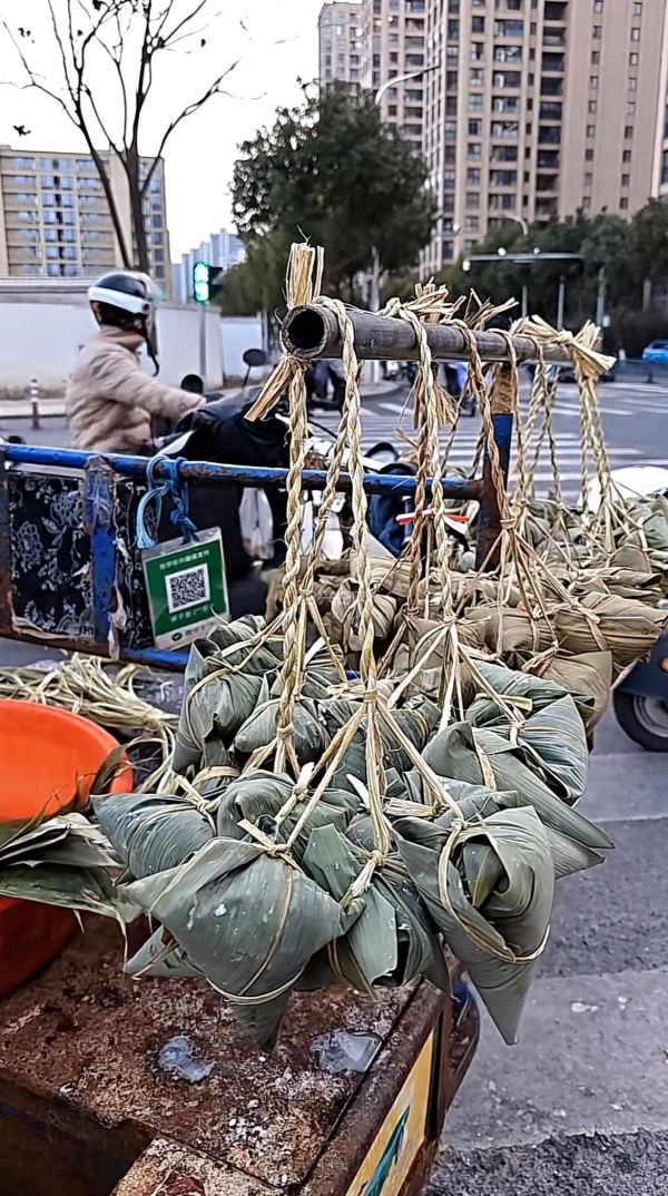 昨天路过东湖老街,看到有卖现裹粽子的摊位。一串串尖角粽子挂在架子上,供人挑选。马上就要过年了,每家每户都会用粽子请菩萨,寓意多子多福。而现在会裹粽子的人越来越少,能在市场上买上一串回家,实在受家庭主妇们的欢迎。