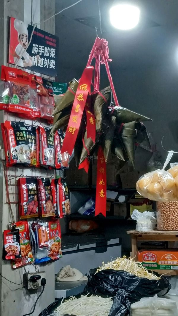 今天去农贸市场买菜,看到有请菩萨的尖角粽,随口问了一下:老板娘一串不概多少钱。