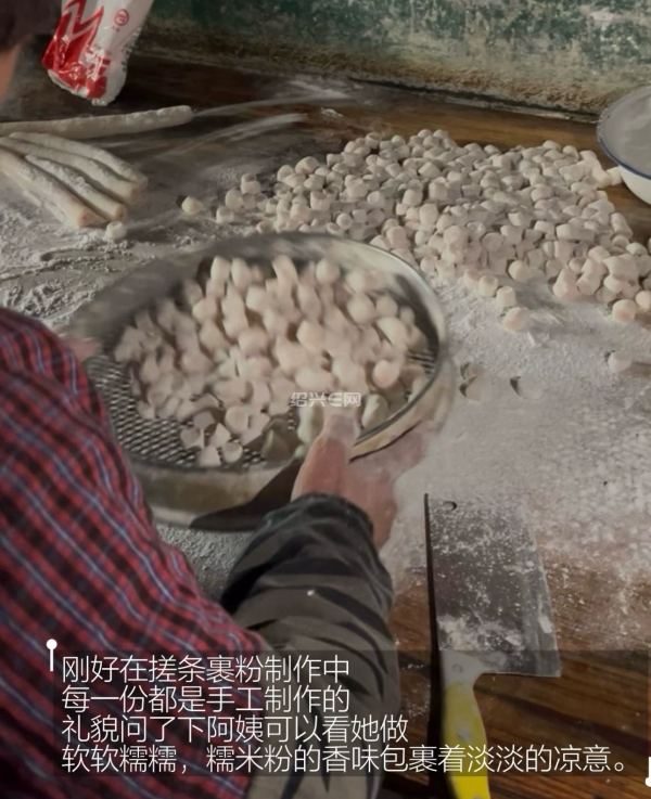 桔红糕软软糯糯的,入口有一股薄荷的凉感,最重要的是不甜,现做现吃的口感真的特别好吃,碰到老板阿姨刚好在里面搓长条裹粉,看着制作的过程特别繁琐,但又十分的有路边烟火气治愈。