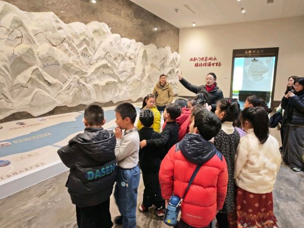 踏入博物馆地下酒窖,近万坛珍藏黄酒整齐排列,浓郁的酒香扑面而来。孩子们踮起脚尖,好奇地打量着古朴的酒坛,当得知其中不乏数十年陈酿,且黄酒酿造历史可追溯至大禹时期,相传由仪狄总结古法酿造而成时,纷纷发出惊叹。讲解员用生动的语言,结合实物展示,为孩子们讲述了“浸米、蒸饭、发酵”等传统工序,让他们了解到黄酒与越地文明的深厚渊源。