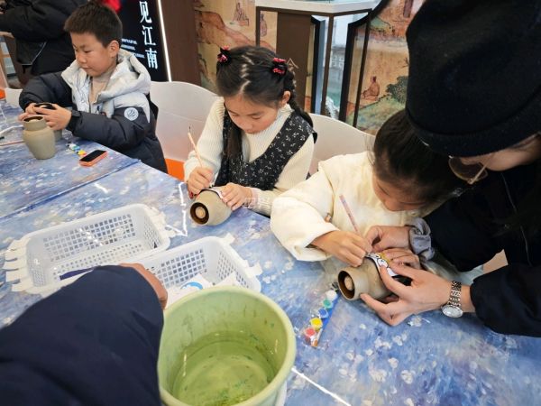 最令人期待的花雕彩绘环节如期而至。在老师傅指导下,孩子们拿起画笔,将童真创意倾注于素白酒坛。有的绘上吉祥花纹,有的画上江南水乡,还有的写下“酒香绵长”的字样,原本朴素的酒坛瞬间变成独一无二的艺术品。“我要把这个酒坛送给爸爸妈妈,告诉他们黄酒的故事!”一位同学捧着作品兴奋地说。