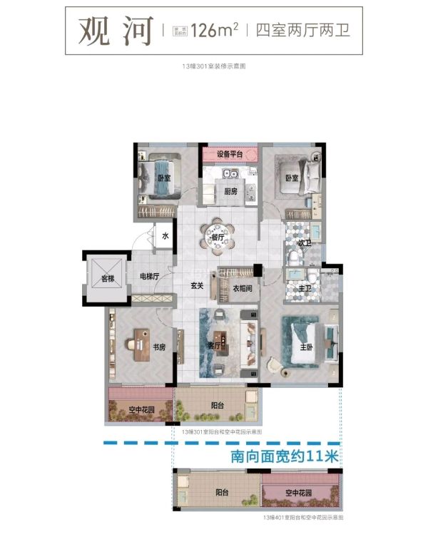 这种错层布置露台,也不是新鲜事物,2009年建成的大滩山水人家及镜湖大桥旁的赞成美林滨江金色家园均有这种设计。