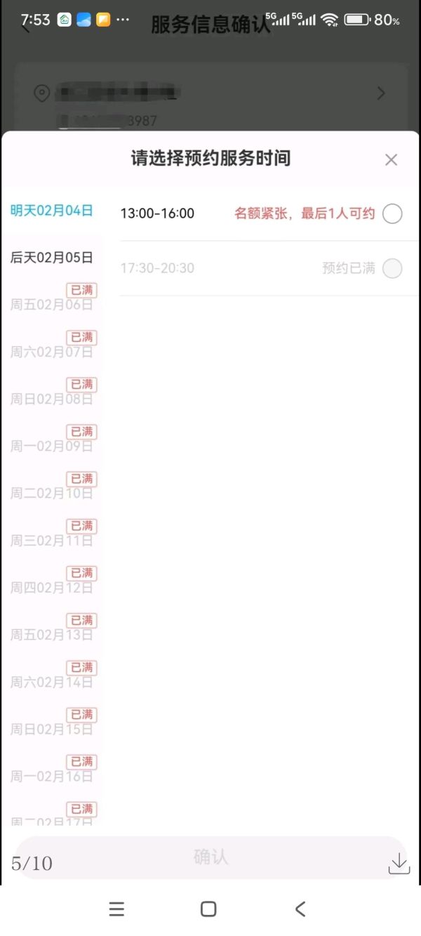 明后天均仅剩一个时间段可约,
