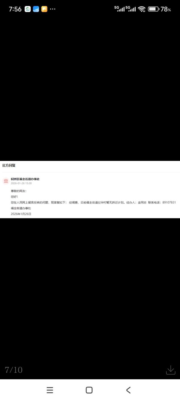 问:领导您好,麻烦问一下绍兴柯桥区福全街道赵家畈欣华村的房子会拆吗?