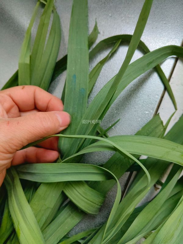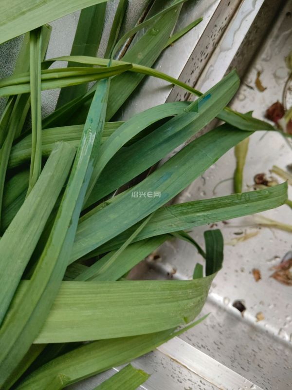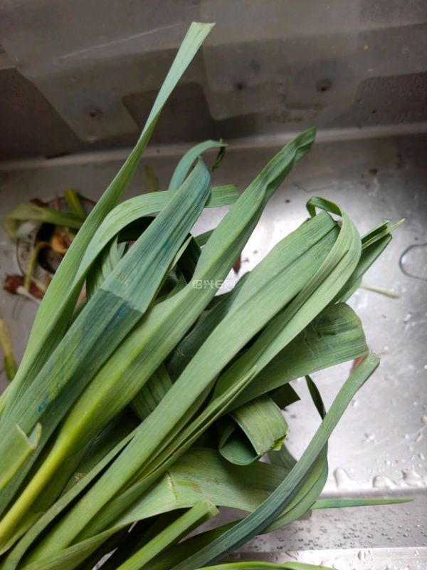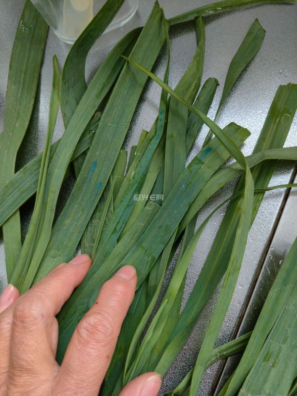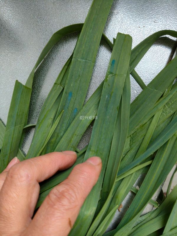 今天在网上订购了大蒜,拿出来看到叶片上有深绿色的东西,不知道是什么?
