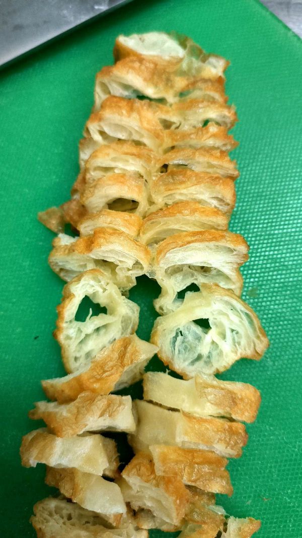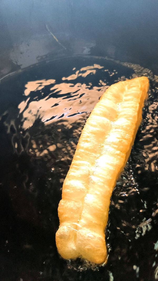 家庭版油条配方分享:普通的农夫山泉500ml的瓶子和盖子,作为精确称重参考,面不能揉,握拳踹面或者按面,踹2-3分钟,盖上醒15-20分钟,面需要三踹三醒,最后一次踹好面,用保鲜膜或者保鲜袋装好,记得裹结实一点,用保鲜膜的话,两头绑扎一下,以免面松劲变得太软,面活好放冰箱冷藏一晚,第二天炸之前提前20分钟取出来,直接用擀面杖轻轻擀平(不要太用力),厚度0.5㎝左右,两指宽,其中一个面块用筷子蘸水在中间轻轻按一下(筷子水要甩一下,水不能太多)再把另一个面块叠起来,再用干的筷子中间压一下就可以下锅炸了,面块记得撑长一下,先中间再两头,油温200℃,筷子放下去有气泡,及时翻滚油条,两面金黄就可以出锅了,很好吃,再陪一碗豆浆就更好了