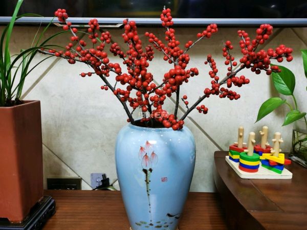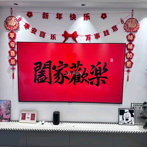 贴了亚克力墙贴,抖音上买了冬青。梅蕊吐芳,红果纳福,家里的年味是自己亲手布置出来的。