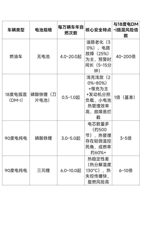 楼主说的有点道理,就一句"燃油车的自燃概率其实比电车好不到哪里去"不敢苟同,油车自燃的大多数是年大老化的,就算自燃也是人命与财产损失可控,而电车呢,自燃没人新旧之分,损失大小纯看命格,可以小到一辆车,大到倾家荡产也没法赔付,一般的方法还灭不了火。