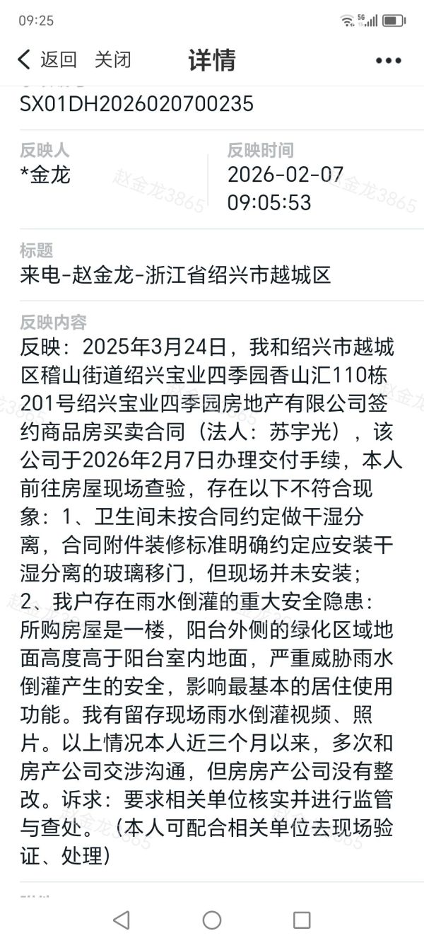 Re:《收到今天收房通知“水漫阳台”房屋是这家绍兴本土上市房产公司》删 ..