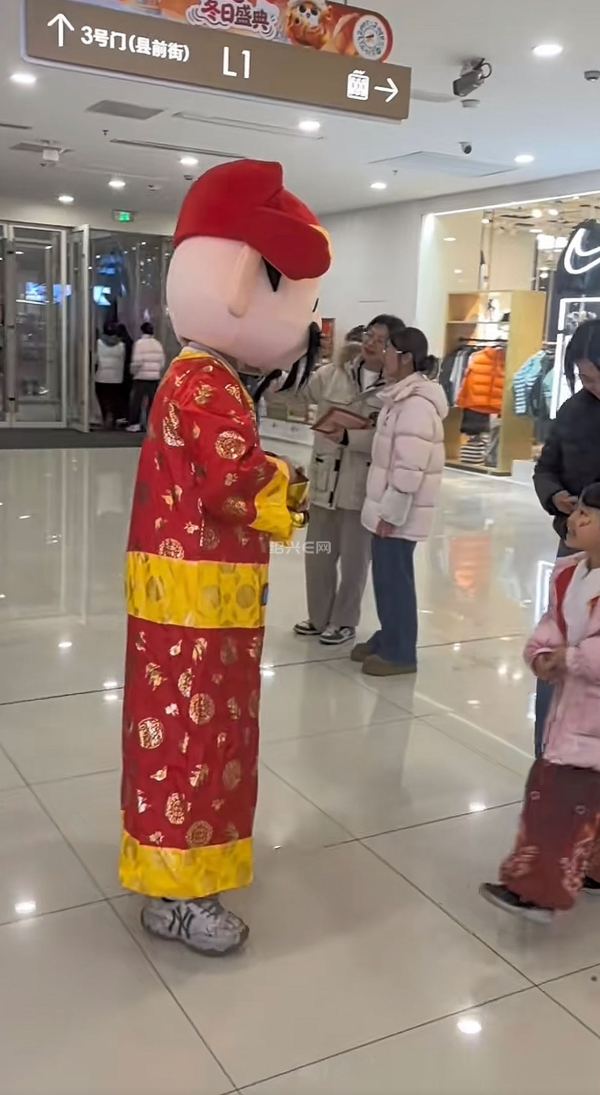 年关在即,市区县前街某商场里出现“财神爷”。这些“财神爷”都是真人扮相,每当有顾客进来,财神爷就会上前送“金元宝”,还与大家合影,很是讨喜。