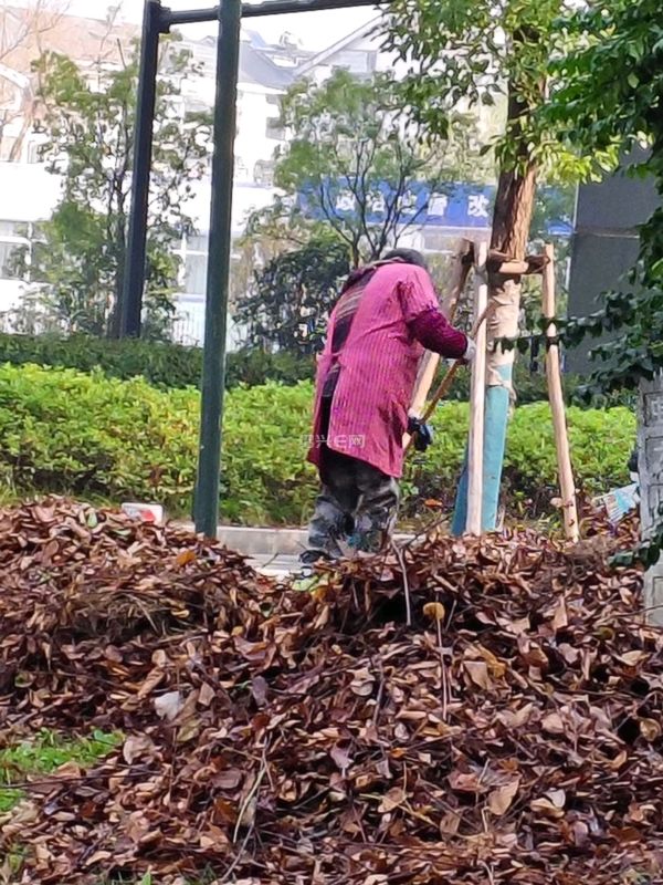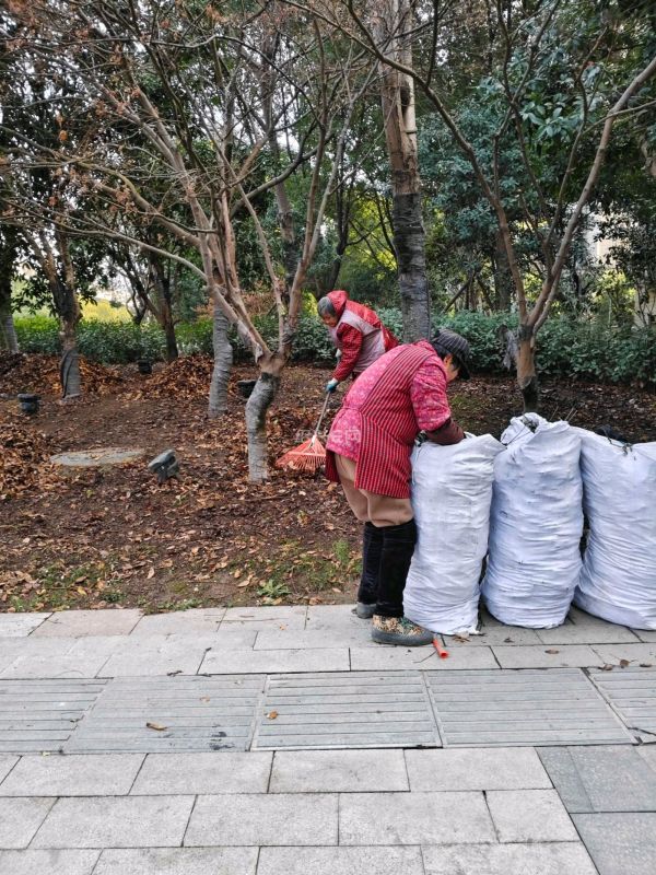 看到绿化清洁工人在清理山会高架南面,人民医院昌安院区旁边的小公园上的绿化带上的落叶。清理出来后用袋子装上,谢谢你们了,为周边居民有一个好的居住环境付出,辛苦了。