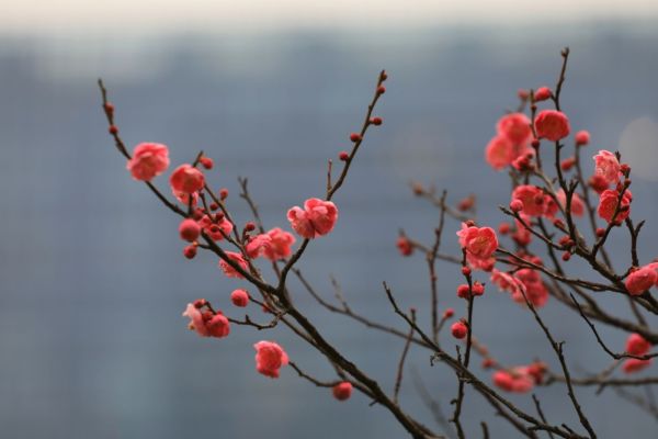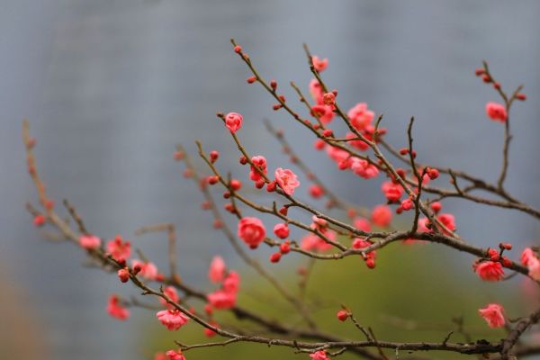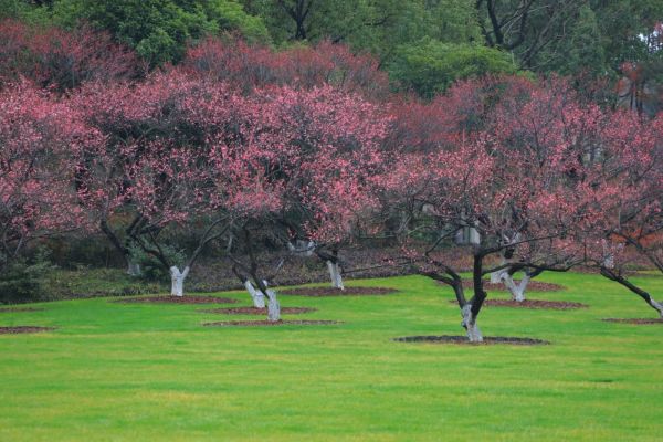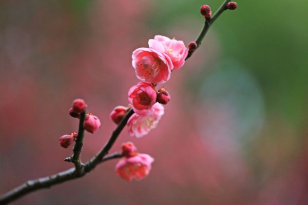 梅枝低垂,重重叠叠的花苞压弯了腰,几乎触到覆着青苔的泥土。蜜蜂在花心嗡嗡作响,忙得晕头转向。