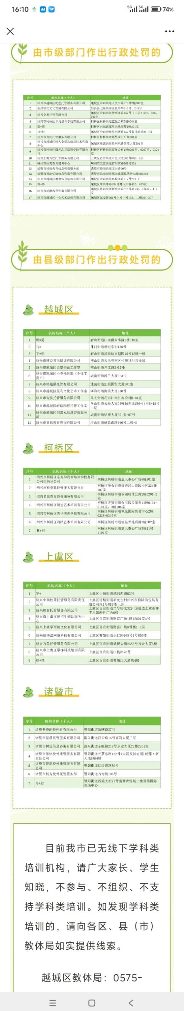 目前我市已无线下学科类培训机构,请广大家长、学生知晓,不参与、不组织、不支持学科类培训。如发现学科类培训的,请向各区、县(市)教体局如实提供线索。