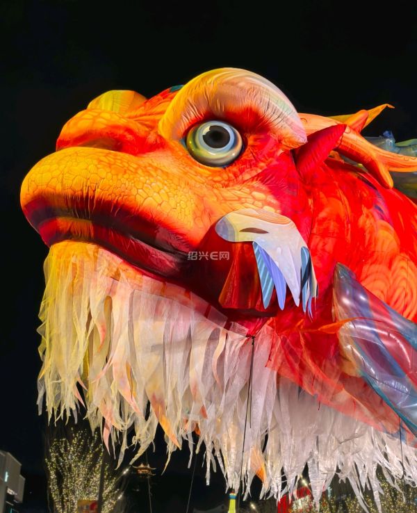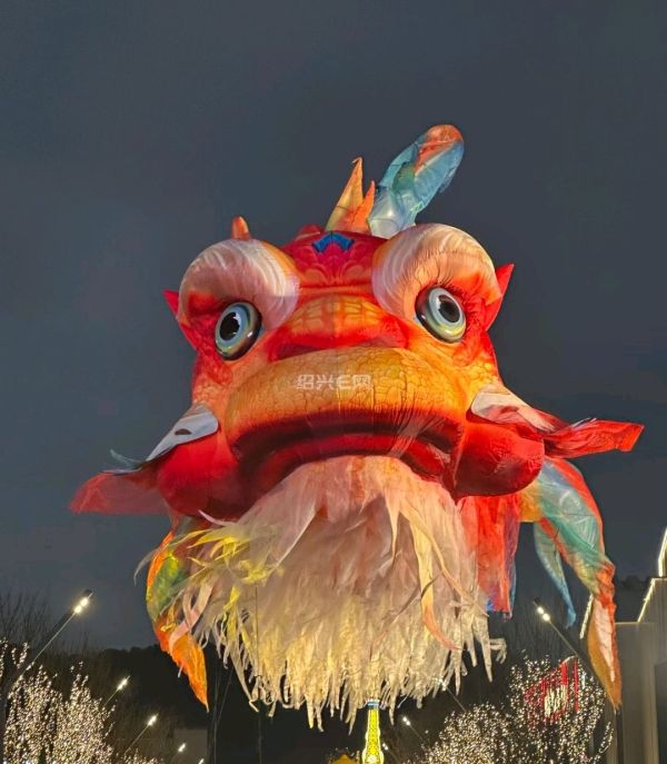 夜幕降临,绍兴天地的巨型鳌鱼灯骤然亮起,流光溢彩、鳞光闪闪,龙头威严、鱼身灵动,非遗工艺与现代光影完美融合,巡游时宛若神鱼踏夜而来,氛围感拉满。