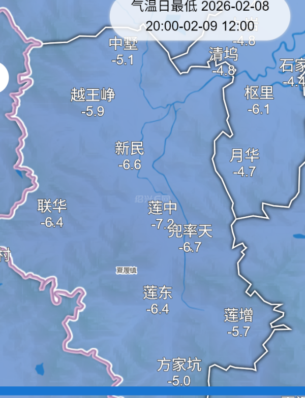 受辐射降温影响,夏履莲中最低零下7.2度,全镇普遍零下5、6度。