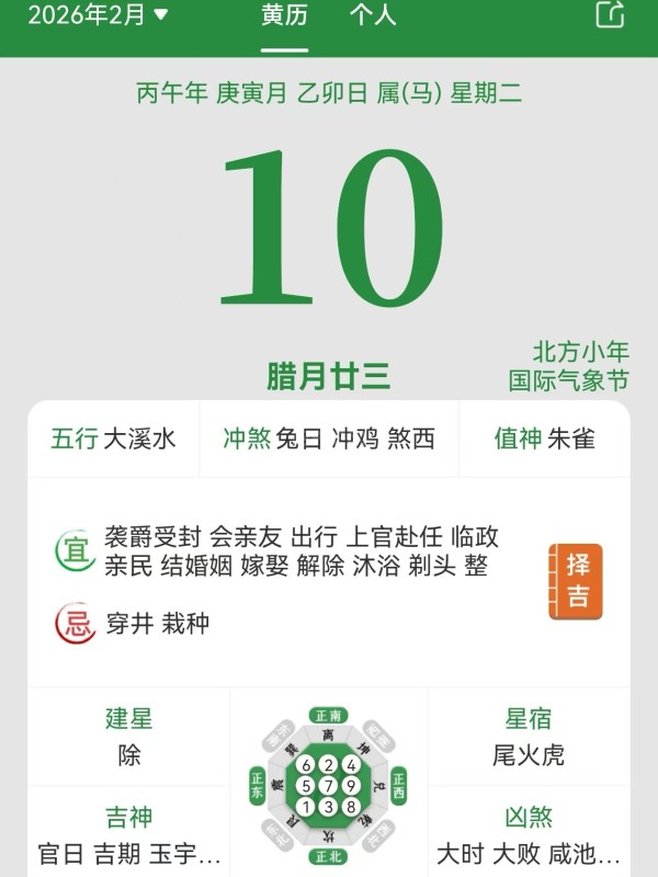 今天宜祭祀和祈福?我怎么没有看到。 (2026-02-10 08:53)