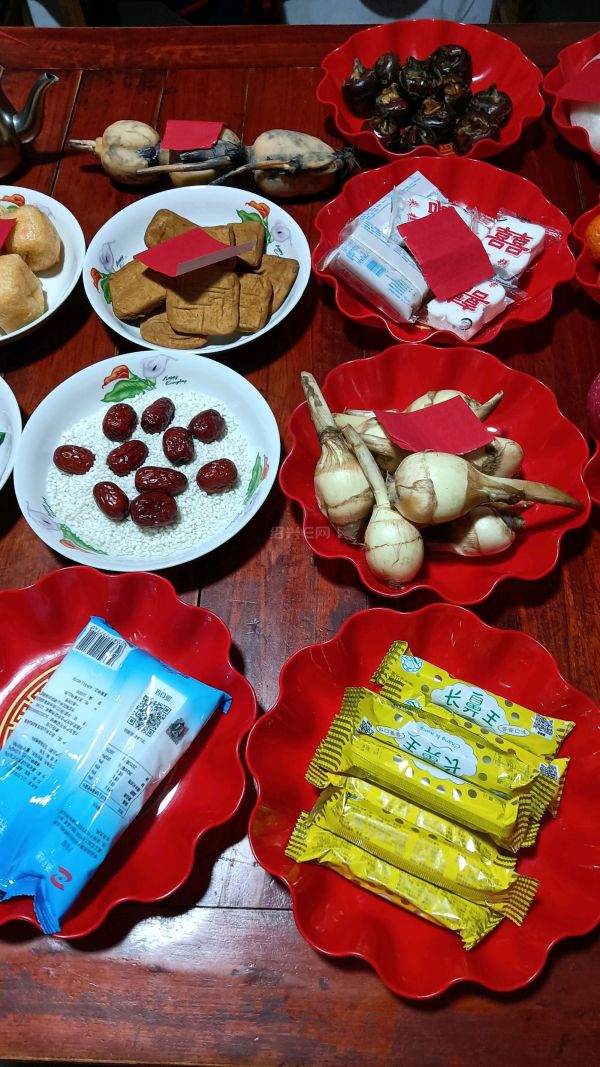 请大菩萨一般三牲福利(考究人家5牲),一套水果(4种,考究人家6种),糕饼蜜饯各四种,三茶六酒+12盅红枣桂圆肉吞吞,其他藕、荸荠、水、油,香烟、饮料等,自己开放式发挥