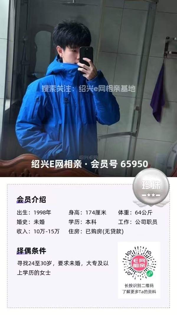 小胡姐帮你们看过照片,清秀帅气的长相,少年感满满,性格简单开朗,待人诚恳,工作踏实稳重。寻觅:28岁以下,本科学历以上,彼此投缘的女生。