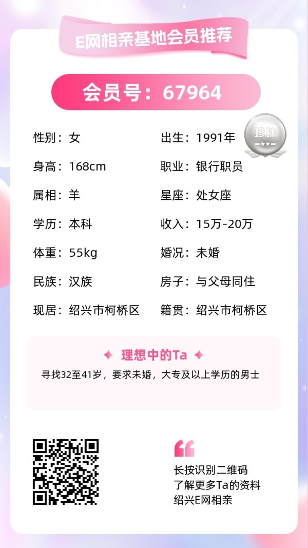 她想找34岁以下,大专及以上学历的未婚男生,想认识她可以私聊楚楚姐介绍哦+67758